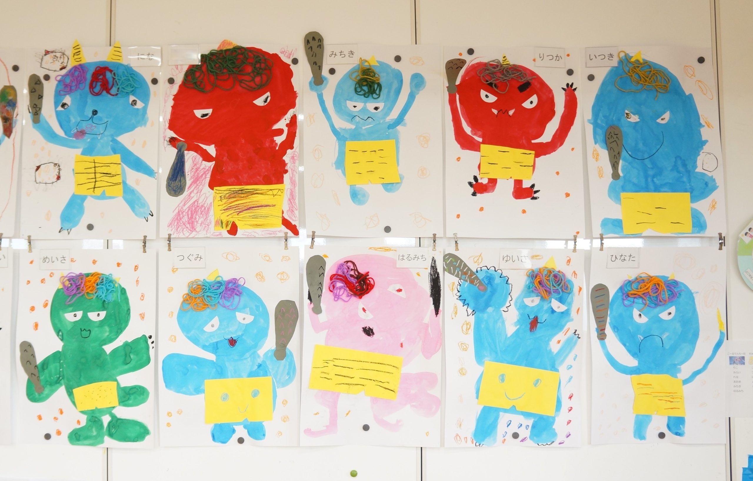 2026年2月27日もも組さんの四つ切製作は「おに👹」です。 鬼のパンツがキーポイントで、自分が描いた鬼のサイズに合わせてパンツを描きました。 大きいパンツだとずれるし小さいパンツだとはけないので、自分の鬼に画用紙を当ててサイズを合わしまし… 続きを読む