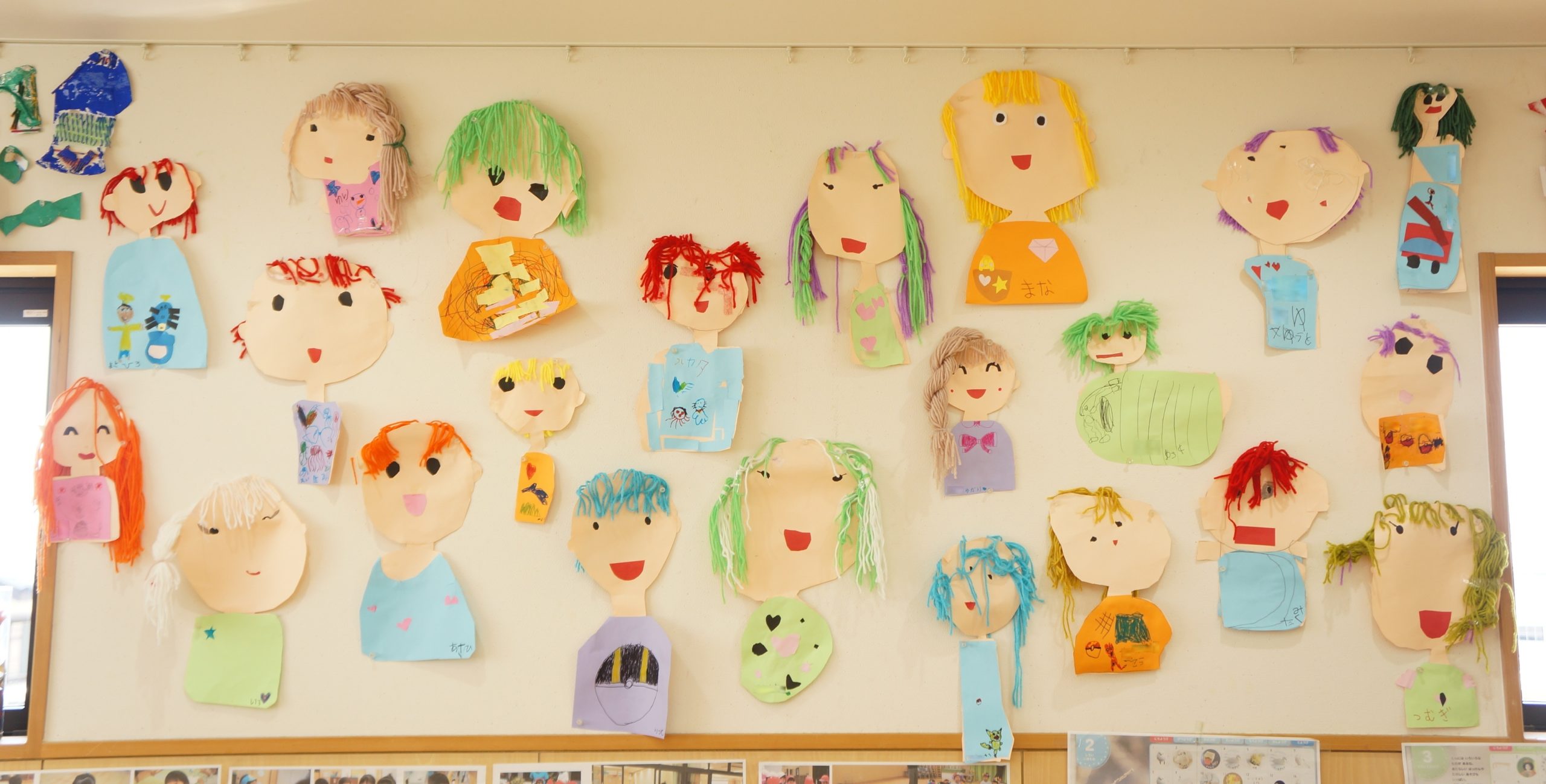 2026年3月12日ひまわり組さんの壁面製作は「ステキな美容室」です。毛糸を使い、束ねてカットして自分の髪の毛をセットしました。 みつあみにしたり、結んだりしてヘアアレンジしていました。色もカラフルでステキですね。 3月13日(金)の降園時… 続きを読む