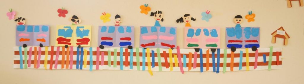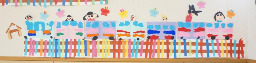 🚃もも組さんの壁面製作で「電車」つくりました。🚃