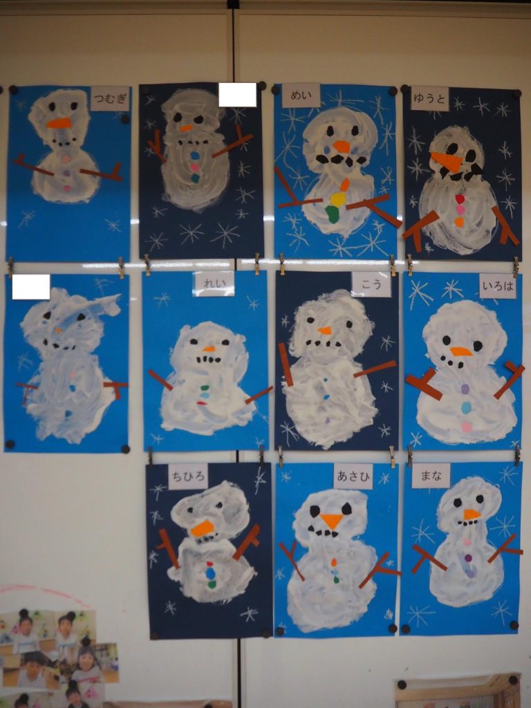 もも組さん2月の四つ切製作「ゆきだるま」です⛄