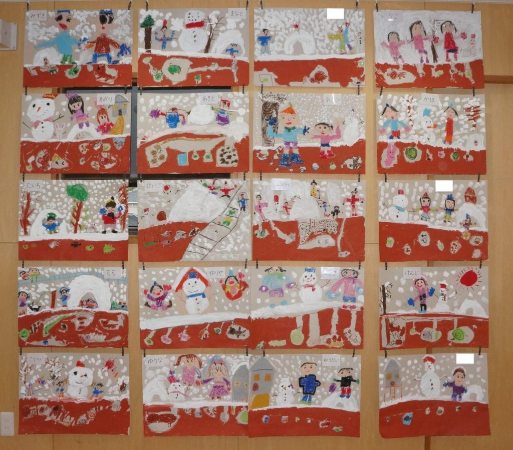 2024年2月22日| ぼくようっこ便り | 2月16日(金)絵画の作品です 2月16日(金)に行われた絵画では、「雪遊び・冬ごもり」をテーマに絵を描きました。 ❄今年は暖冬で雪を見ることは少なかったですが❄ 🐰イメージを膨らませて冬の景色を描いていますね⛄